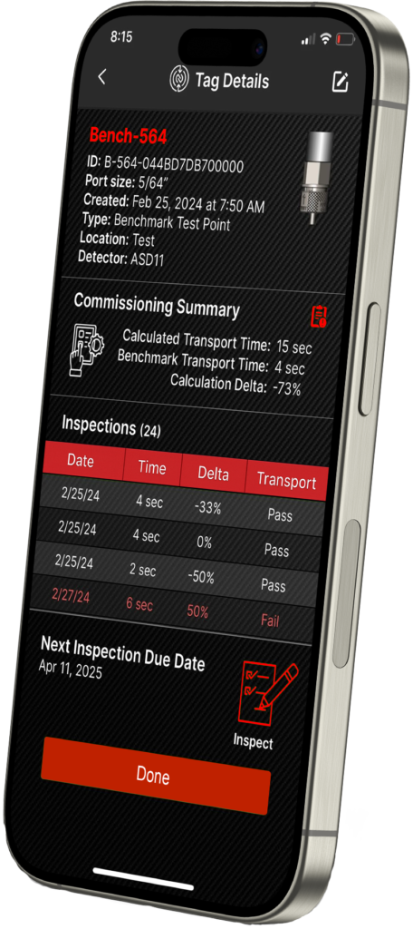 ASD InspectPro™ is the only app designed specifically to support the testing, inspection, and commissioning process of air sampling smoke detection (ASD) systems-built to seamlessly integrate with our full line ASD accessories.