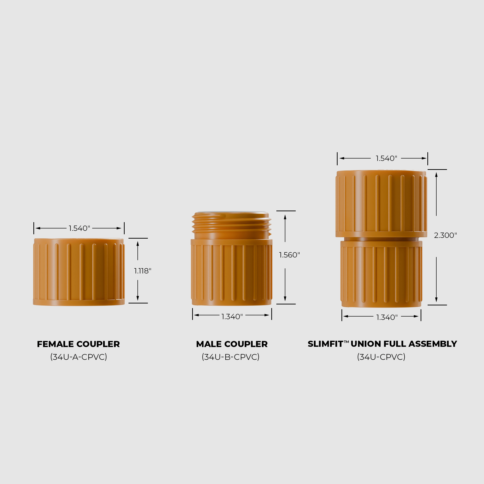 Perfect for space-constrained environments, the SlimFit Union™ combines durability with easy installation, making it an excellent choice for ASD sampling pipe networks. Made from orange CPVC, it matches traditional ASD pipes both physically and aesthetically. The union provides a leak-proof connection when tightened, and its ribbed design offers grip for easy unscrewing and detachment.